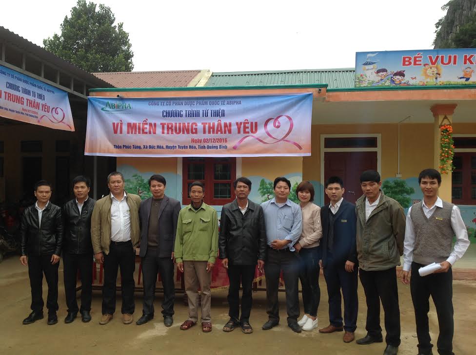 Ngay từ khi biết tin đồng bào 2 tỉnh Quảng Bình và Hà Tĩnh phải hứng chịu lũ kép, Công ty Abipha đã phát động tới CBCNV chương trình “Vì Miền Trung thân yêu”. Sau đợt quyên góp, Abipha đã trích 60 triệu đồng và kịp thời có chuyến thăm và tặng quà cho người dân, học sinh và trạm y tế xã Đức Hóa.