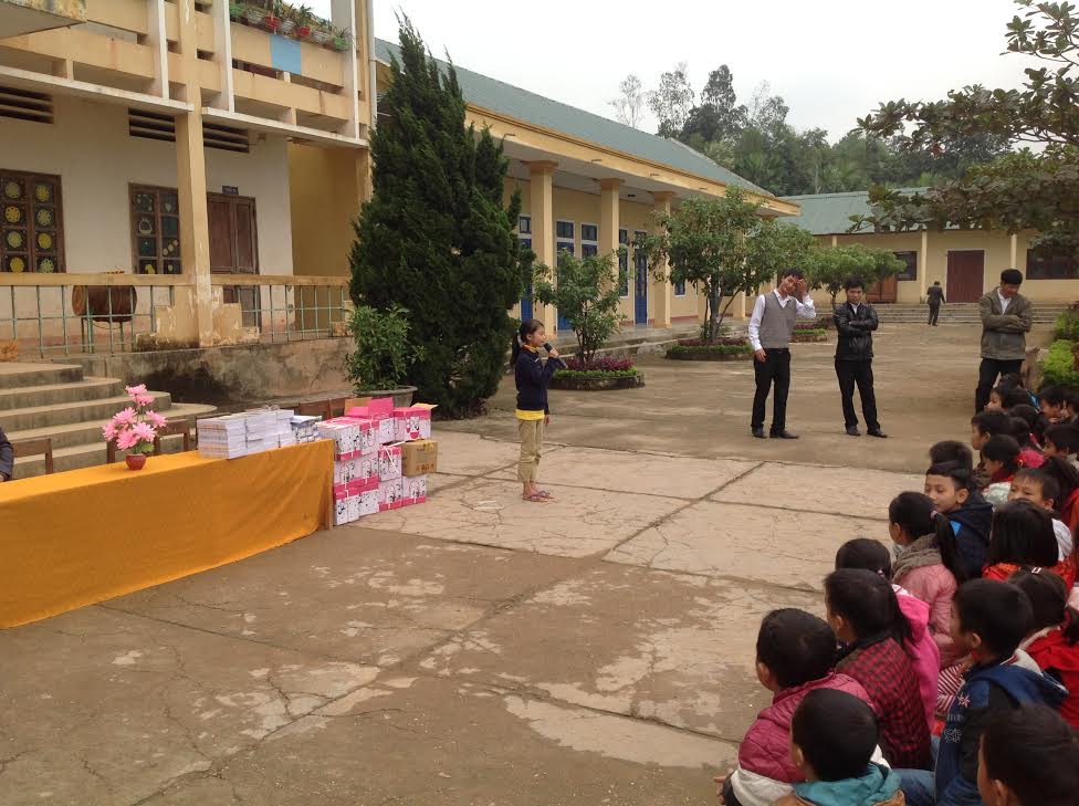 Tiếp tục cuộc hành trình, đoàn di chuyển về Trường tiểu học Đồng Lâm – nơi nuôi dưỡng những mầm non tương lại của đất nước và cũng là nơi tránh, lưu trú cho bà con trong thôn khi lũ về.