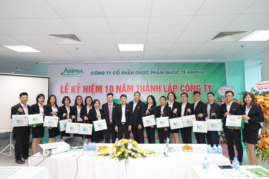 Chương trình kỷ niệm 10 năm cũng là dịp để ban lãnh đạo ghi nhận đóng góp của những người đã gắn bó, hợp tác và chung sức vì sự phát triển của Dược phẩm Abipha. Đồng thời bày tỏ lòng tri ân đến toàn thể đối tác, khách hàng, các nhà nghiên cứu khoa học đã có những đóng góp cho sự phát triển và đồng hành hợp tác cùng Abipha trong suốt thời gian qua với hơn 1200 phần quà được trao tặng.